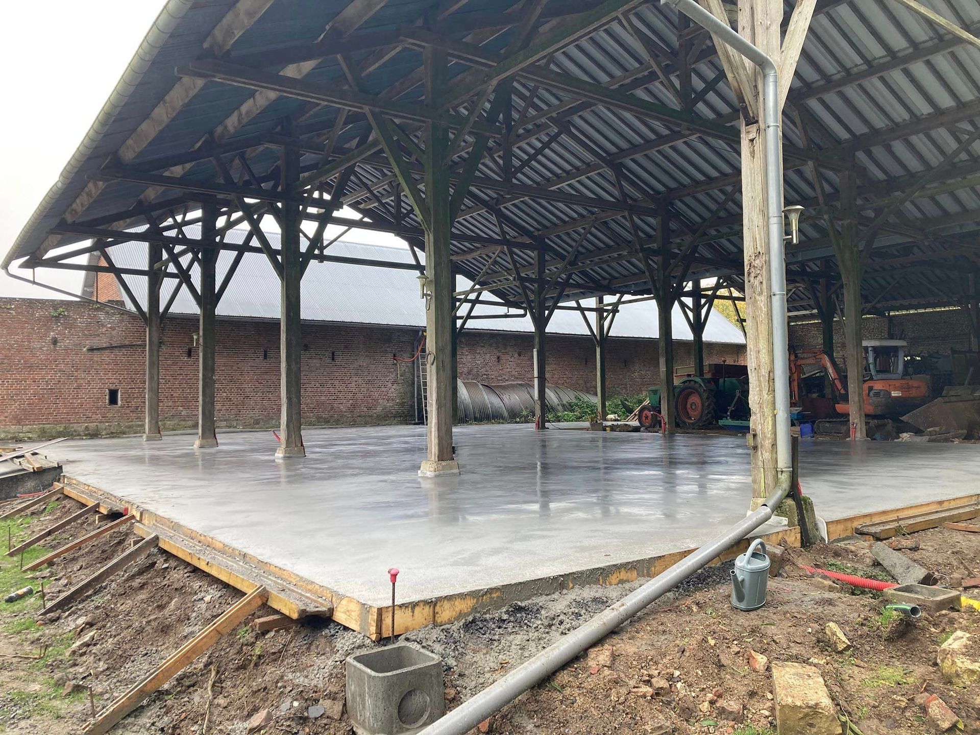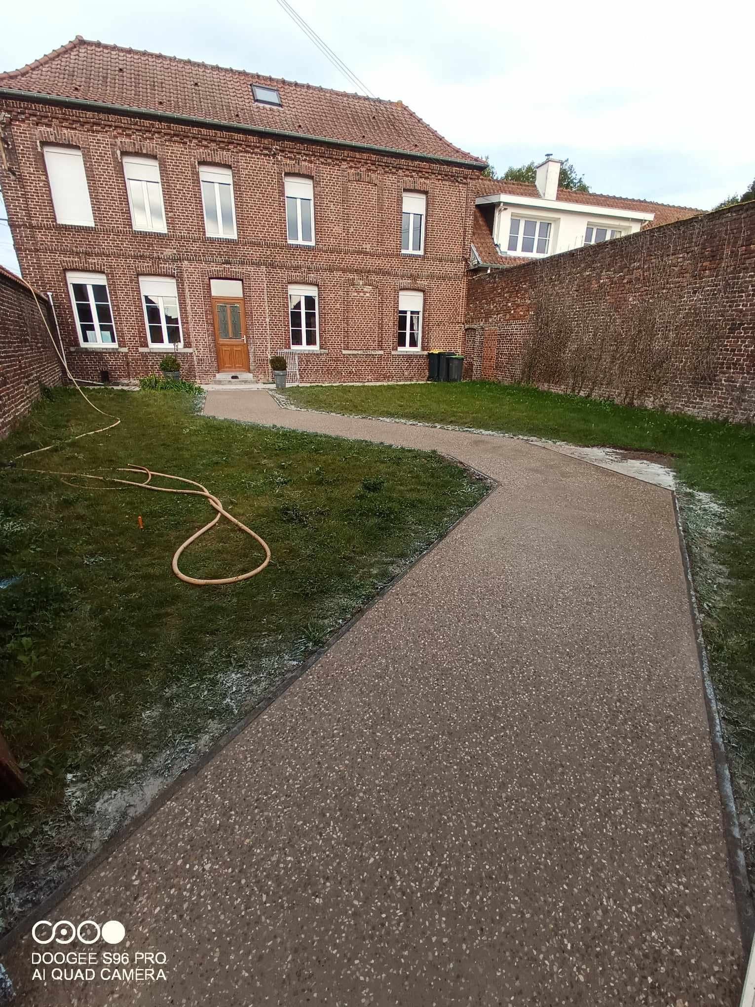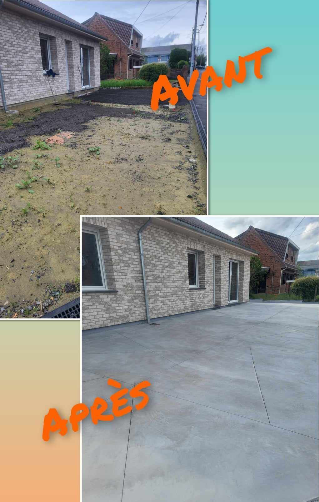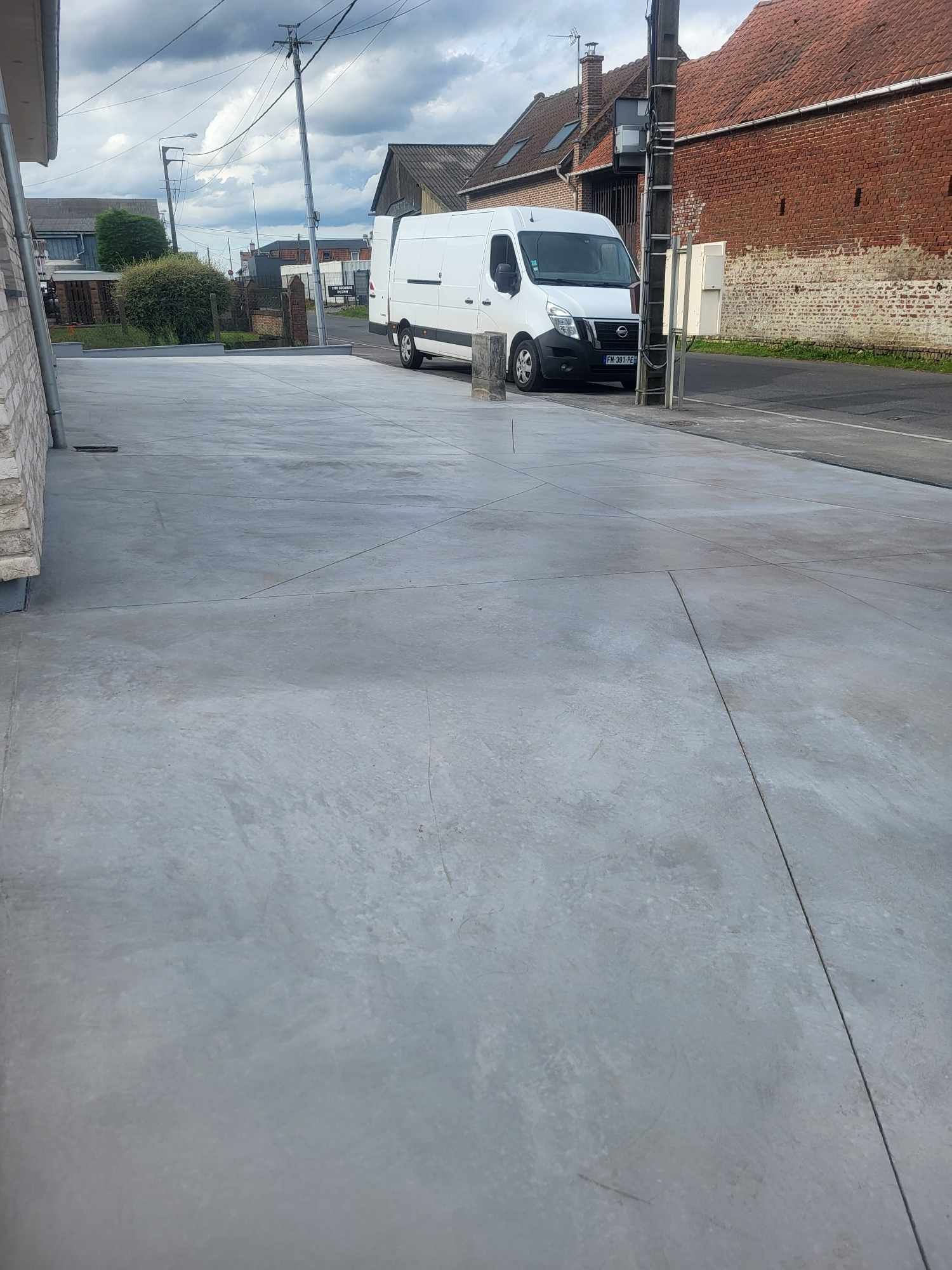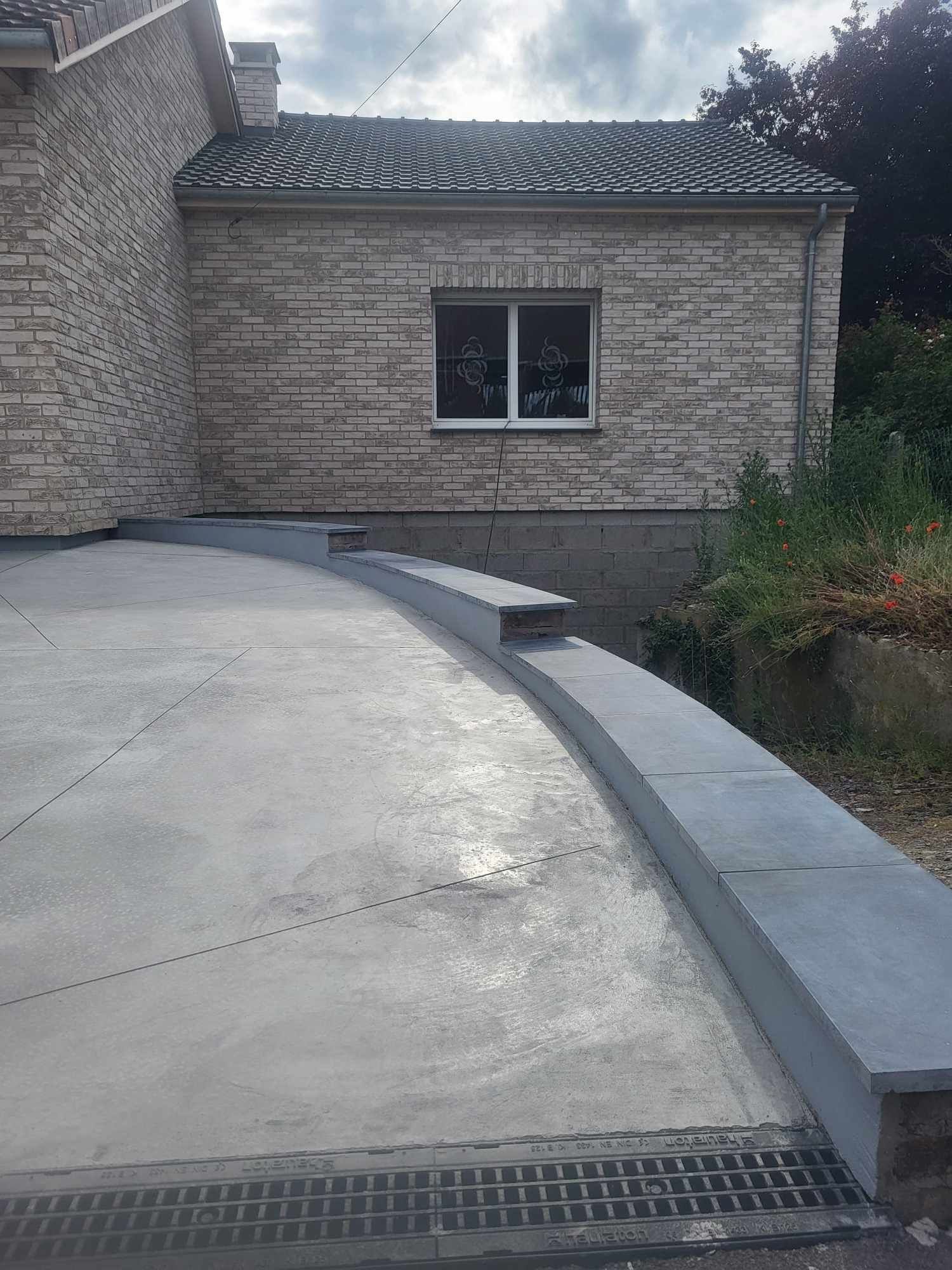 Dallage béton, voie d’accès, terrasse et maçonnerie.